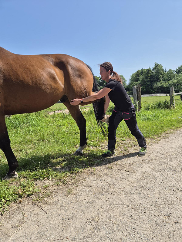 Similar to physical therapy in human medicine, an equine physiotherapist works to support the horse’s physiologically correct movement sequence. This is crucial for keeping the animal healthy in the long term.