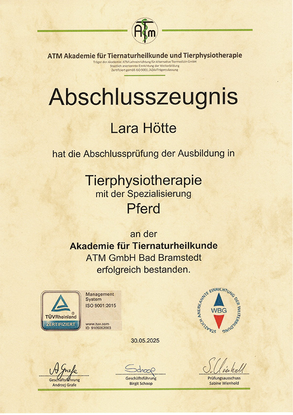 I am Lara – a trained physiotherapist for dogs and horses – with heart, mind, and a great deal of animal love.