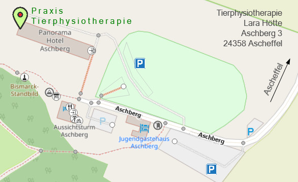 My animal physiotherapy practice is idyllically located at the Panorama Hotel Aschberg, in the heart of the Hüttener Berge Nature Park. The quiet, natural surroundings offer ideal conditions for a relaxed and stress-free treatment for your animal.